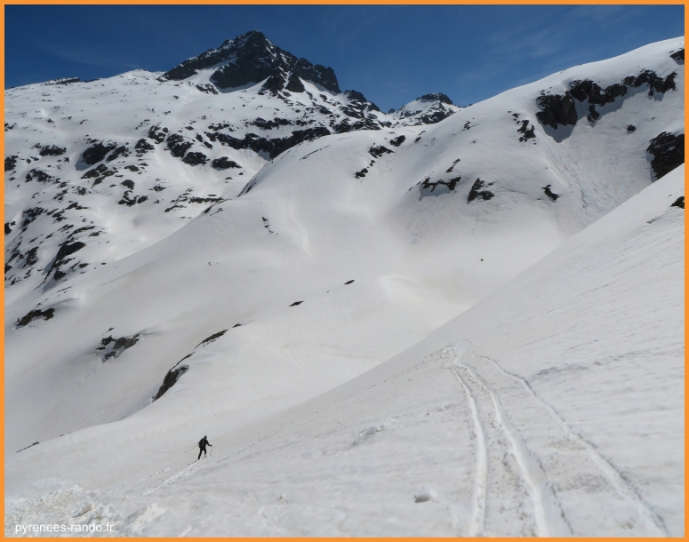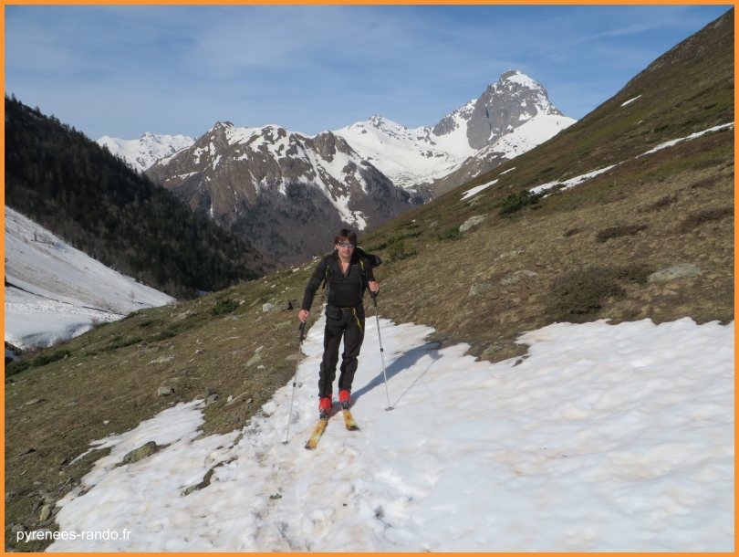 l'Ossau, après une heure de portage, nous chaussons les skis.
