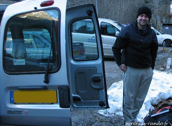 Départ parking du refuge CAF de Gabas 1060m, 1ère rando à ski pour Baptiste.