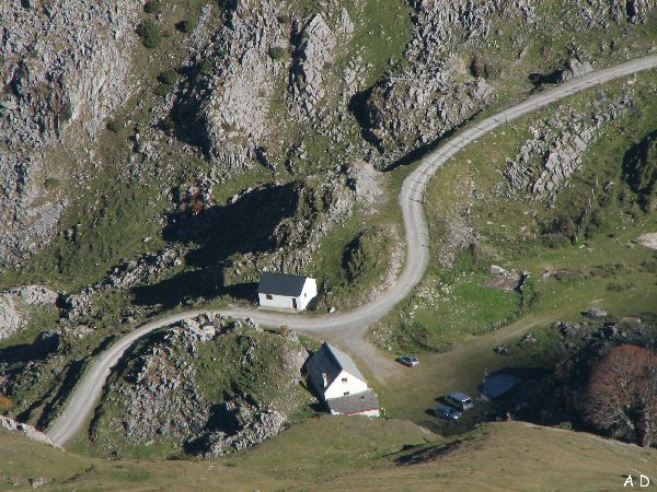 Et vue plongeante sur les cabanes d'Escalac 520m plus bas .