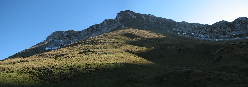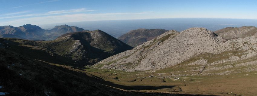 Derrière nous l'itinéraire de descente et toute la crête parcourue . (Cliquer sur la photo pour afficher la légende)