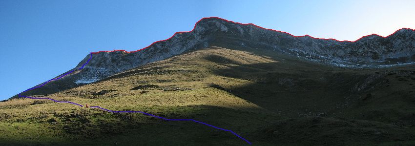 Derrière nous l'itinéraire de descente et toute la crête parcourue . (Cliquer sur la photo pour retirer la légende)
