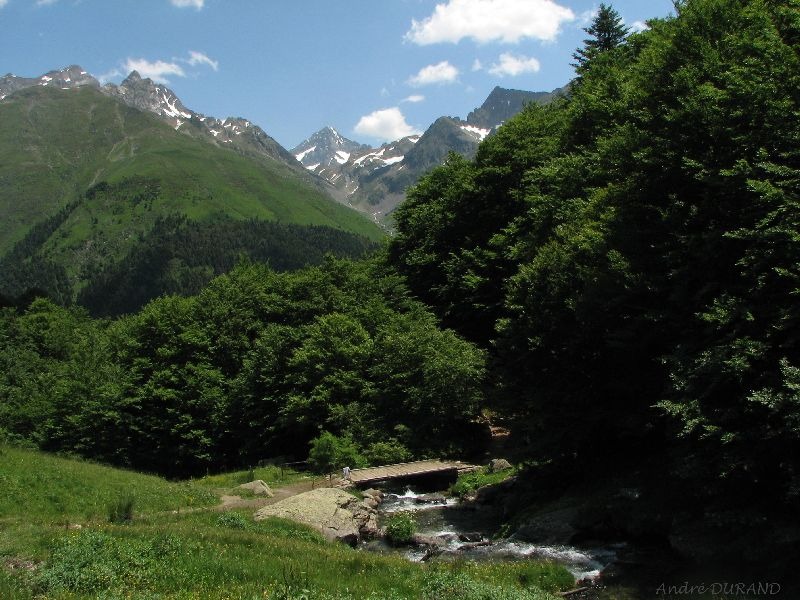 A la sortie du bois, la passerelle enjambe le ruisseau et ouvre le chemin du val de Pombie.
