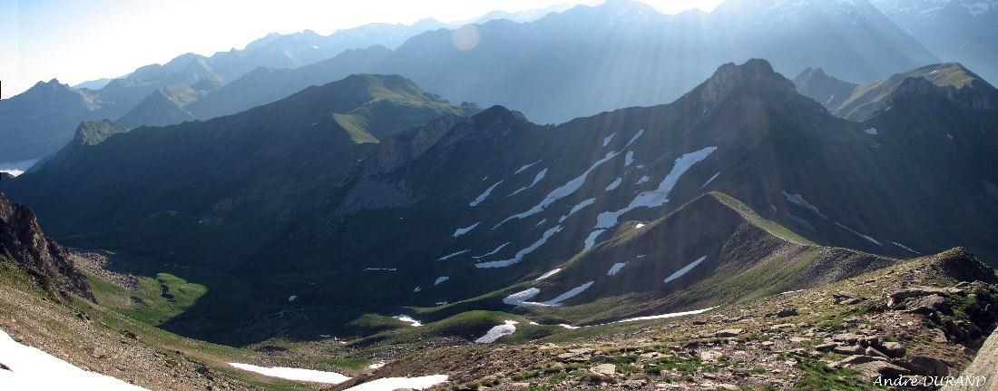Du pied de la 1ère cheminée, pic Lavigne, Chérue, Saoubiste.