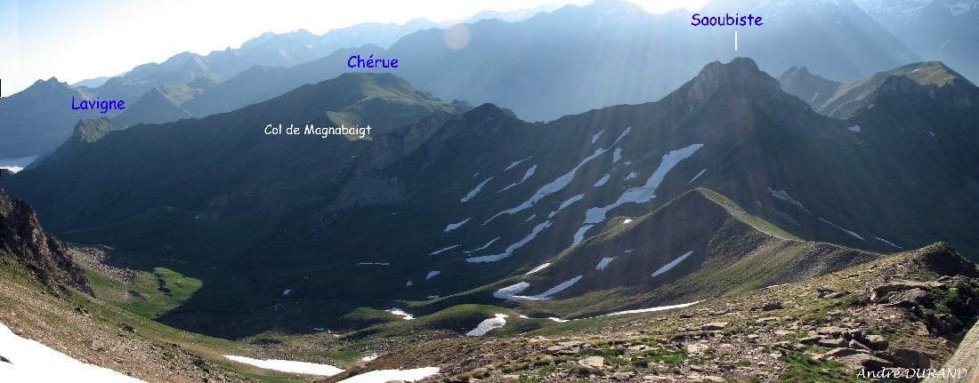 Du pied de la 1ère cheminée, pic Lavigne, Chérue, Saoubiste.