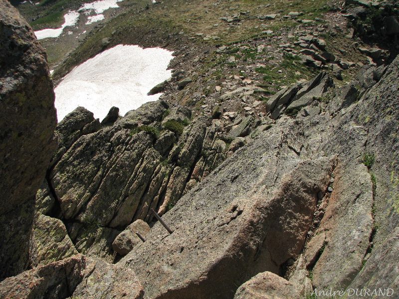 Des barres de fer faciliteront la progression pour gravir la 1ère cheminée de la voie normale du pic du Midi d'Ossau.