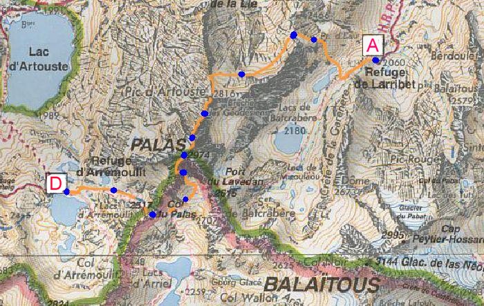 Refuge d'Arrémoulit 2305m - Palas 2974m - Refuge du Larribet 2065m