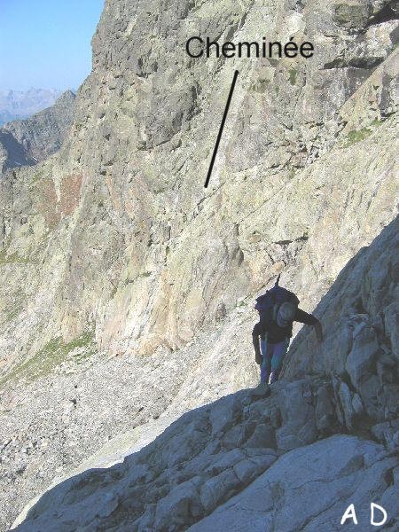 Traversée à droite sous la deuxième cheminée pour atteindre... la cheminée Ledormeur