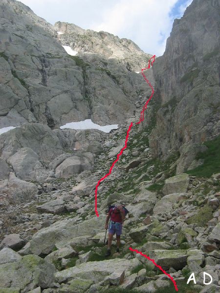 Descente vers le lac inférieur de Batcrabère. (Palas)