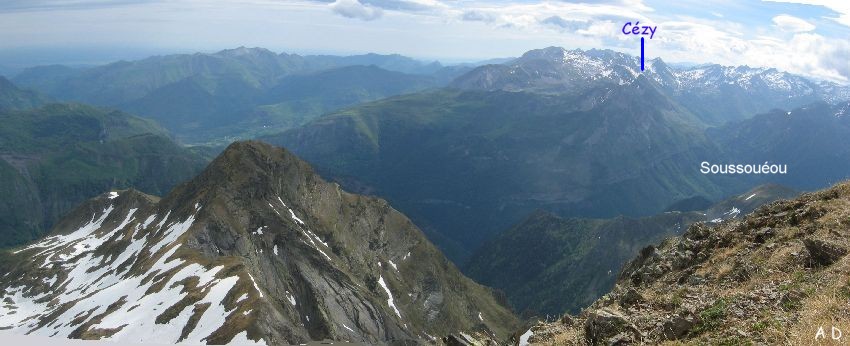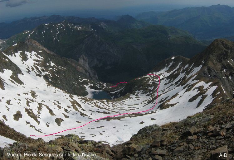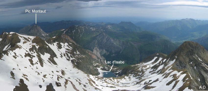 Tour d'horizon depuis le sommet de Sesques 2606m, le lac d'Isabe 700m plus bas.