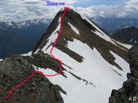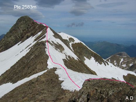 La crête entre le pic de Sesques et la pointe 2583m vers l'Ouest.