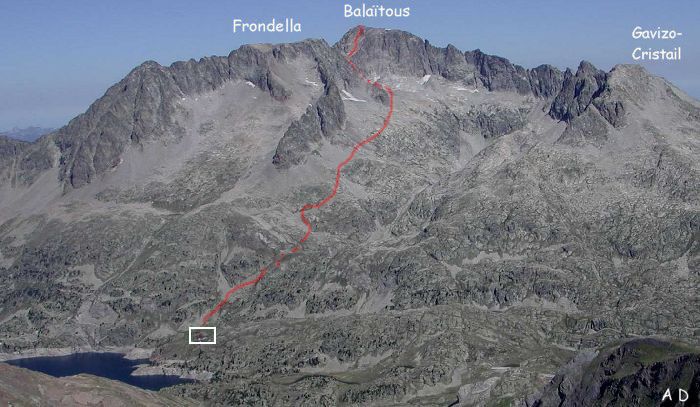 Itinéraire de descente du Balaïtous vu depuis le pic de Tebaray Carte