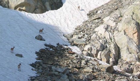 4 isards assurent le spectacle. Ils vont grimper au boulevard Packes en moins de 5mn.