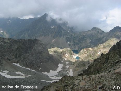 Vallon des Frondella avec en contre bas le Gourg Glacé et un petit