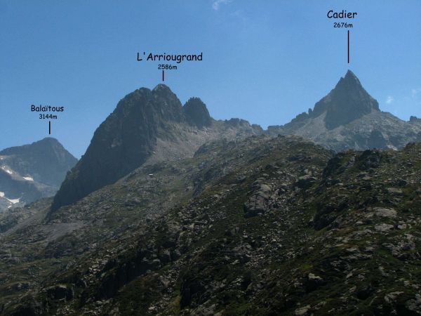 A l'approche du barrage, l'Arriougrand et le pic Cadier cachent le Courouaou.
