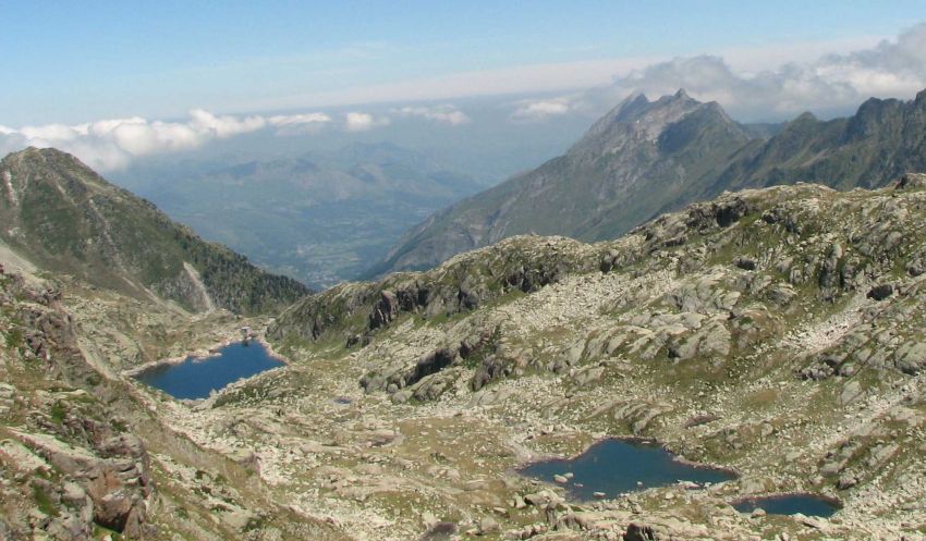 Un petit crochet sur le mamelon côté 2427m pour apercevoir le vallon de Tramezaygues et les lacs de Lassiédouat avec le Pic du Midi d'Arrens en arrière plan. (Cliquez sur la photo pour afficher la légende) |