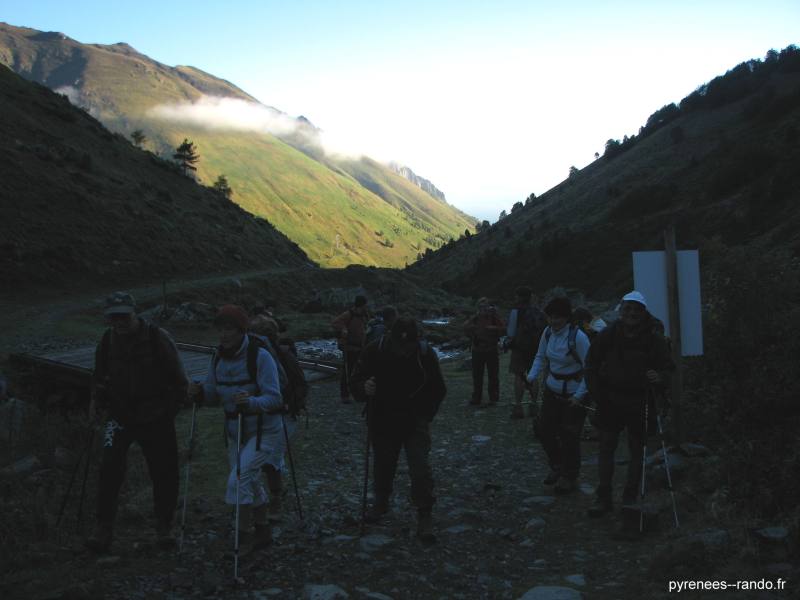Il ne fait pas chaud en ce début de matinée. La gelée recouvre le pont. Nous rentrons dans le parc national des Pyrénées.