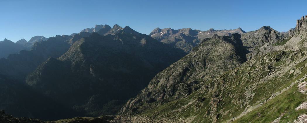 La vue est grandiose : pic de la Sède, Vignemale, Arratille, ....