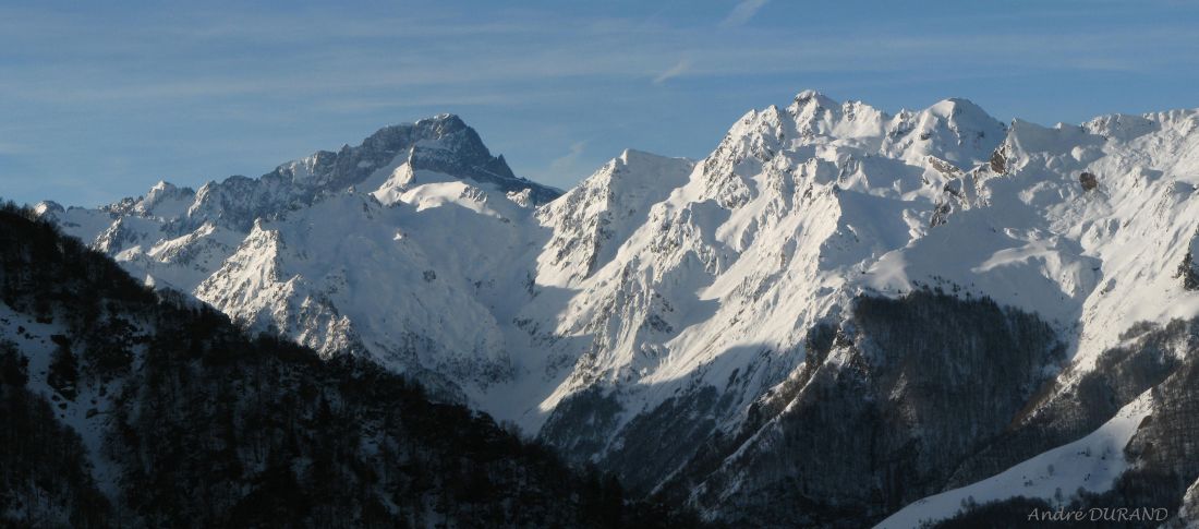Dès la sortie du bois, la vue est grandiose sur le Lavedan : Balaïtous,