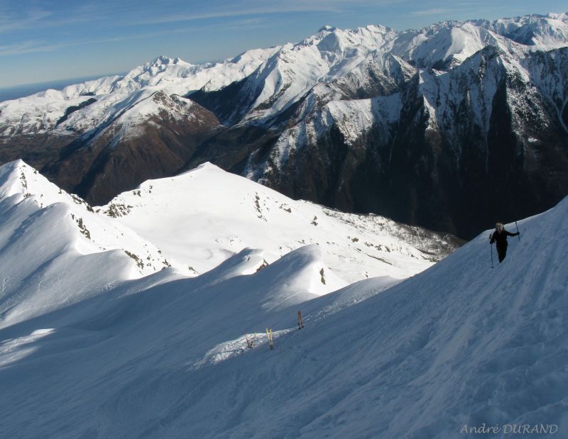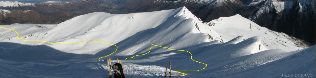 Dans les derniers 80m, nous déchaussons et plantons les skis pour terminer à pied.