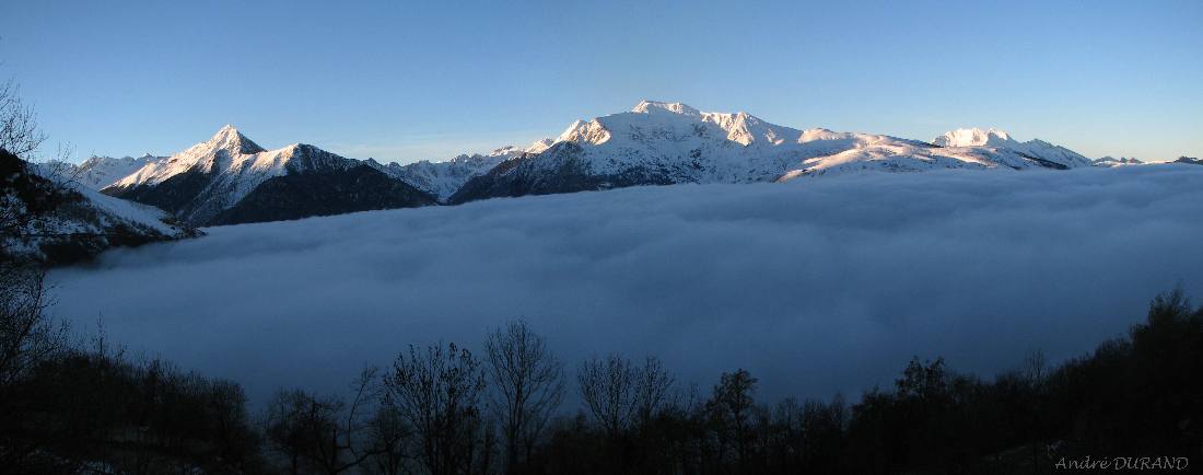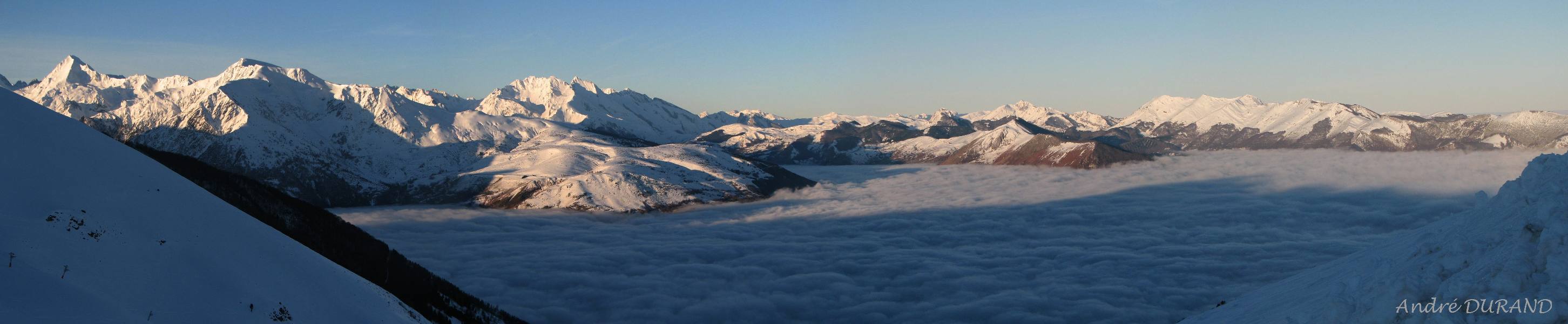 Panorama du Moun-né de Cauterets, au crête du Pisbeste, en passant par le Cabaliros, massif du Gabizos, col d'Andorre...