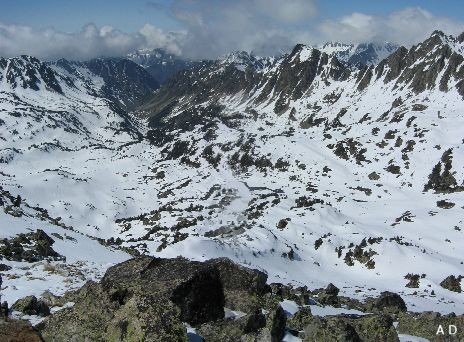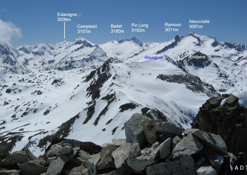 Panorama Sud Ouest sur les 3000 : Estaragne, Campbieil, Pic Long, Ramoun et Néouvielle Carte