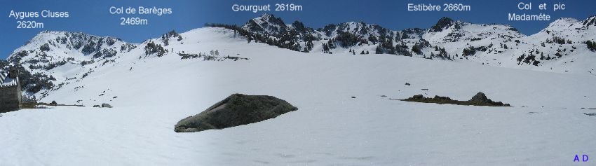 Panorama à l'approche de la cabane 'Aygues Cluses (col de Barèges, les pics Gourguet, Estibère, Madaméte)