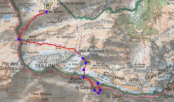 ![]() La Tour, le Casque, les Sarradets, le Doigt de la fausse Brèche, le Taillon depuis la grange Cazaux au dessus de Gavarnie