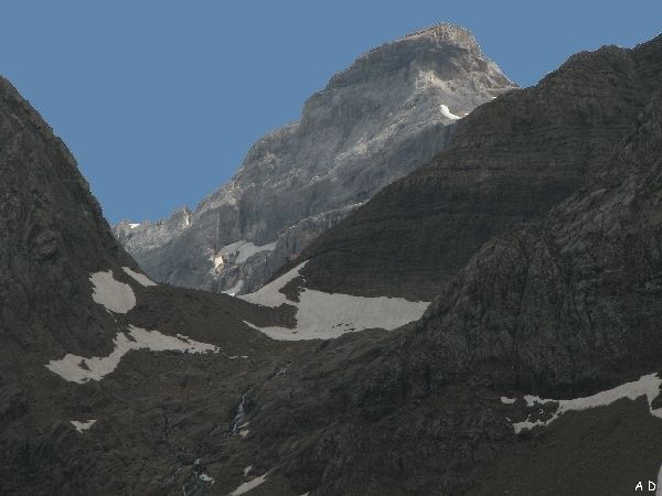 Le Casque 3006m (02) Sur la route menant au col de Boucharo 2270m, zoom sur le Casque 3006m, l'objectif de la journée |