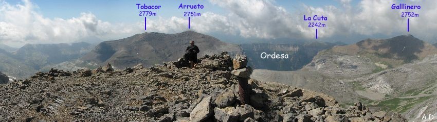 Au Sud, le canyon d'Ordesa, le Tobaco, l'Arrueto, la sortie du Cotatuero, la Cuta, et le Gallinero