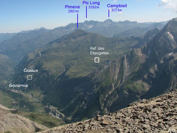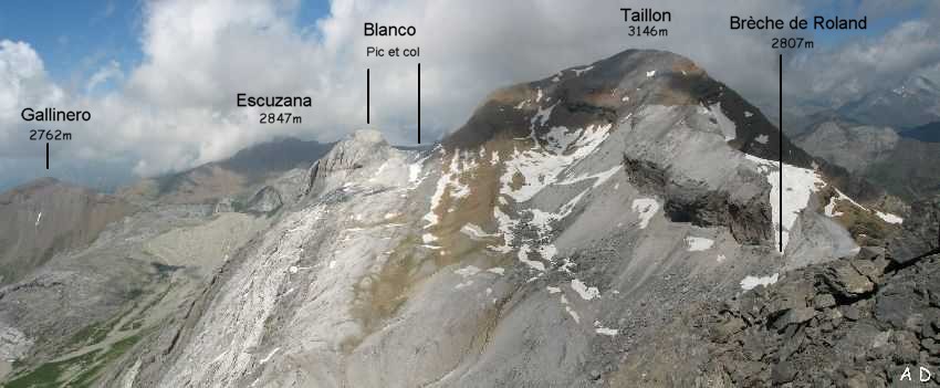 Toujours à l'ouest, en contrebas, l'Escuzana, le Taillon, et la brèche de Roland