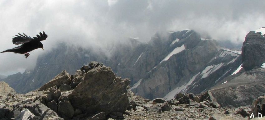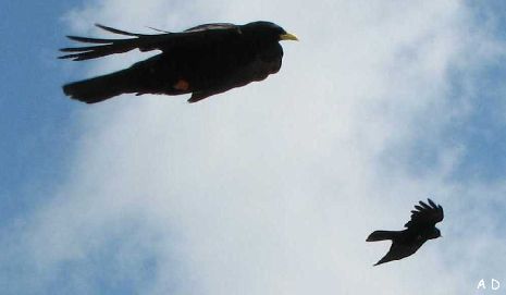 Au sommet, le ballet des chocards au bec jaune profitant des moindres turbulences de l'aérologie.