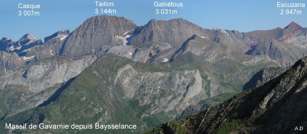 vers l'Est pour passer au pied du pic de Gabiétous (~2700m), banquettes