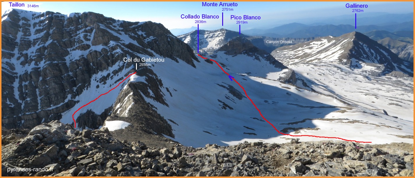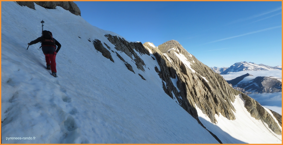 8h10 L'arrivée au col du Gabiètou 2938m. (Nous profitons d'une ancienne trace)
