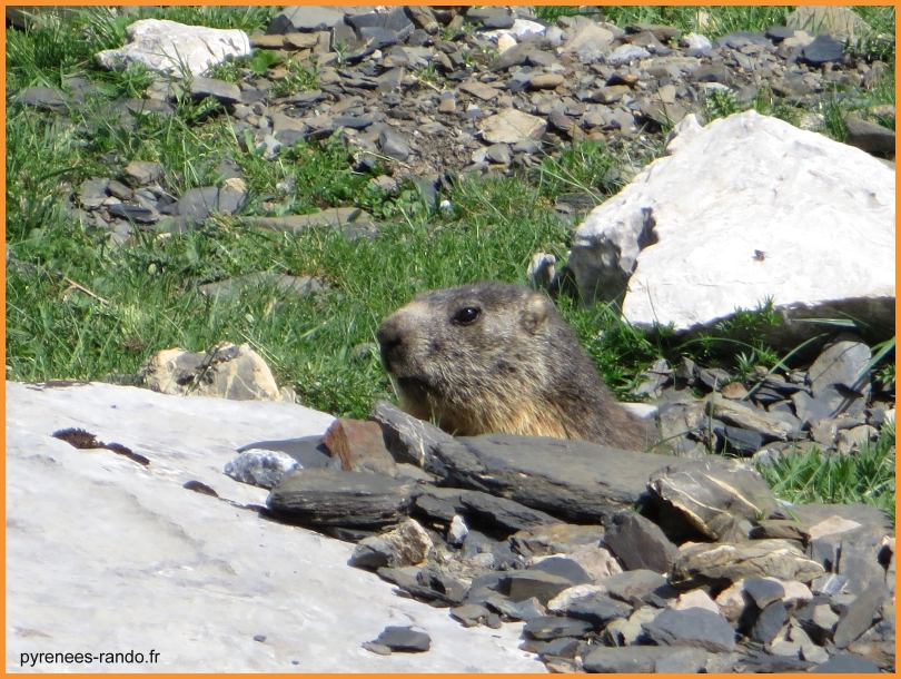 Mais qui est caché derrière ces cailloux ? Dame marmotte !!.