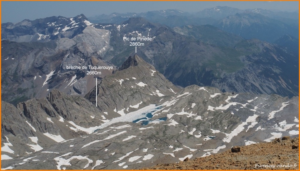 avec la Brèche de Tuquerouye et le pic de Pinède puis la plongée sur la