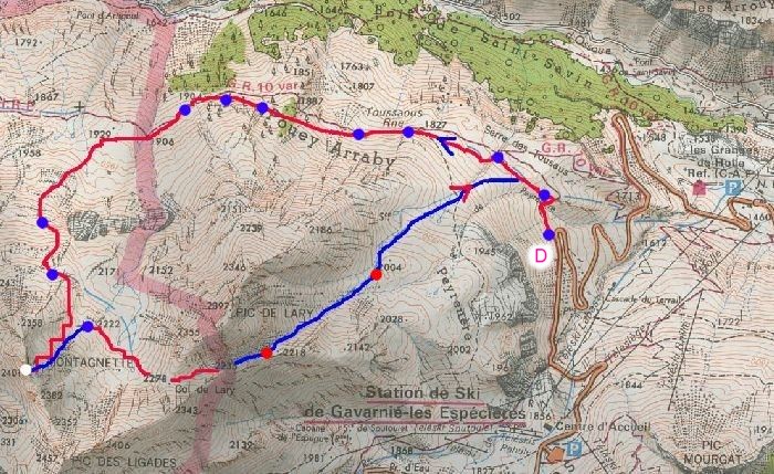 Départ du virage 1680m à 2km de la station des Espécières. Passer la
