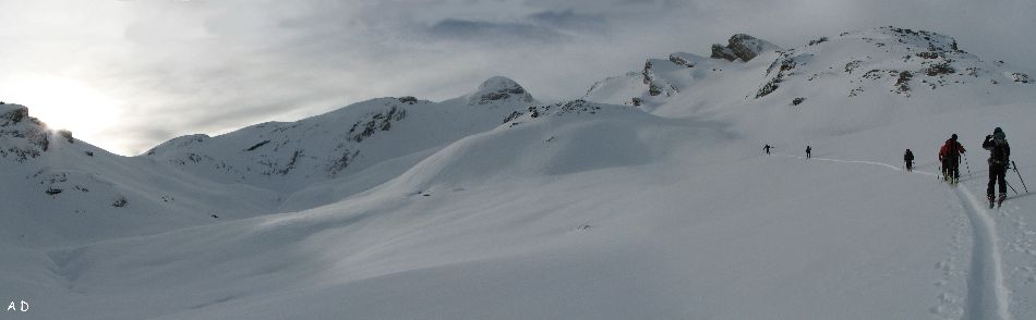 Col de Larry, pic des Ligades et pic de Montagnette derrière les éperons rocheux.