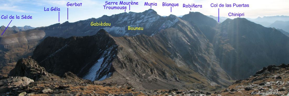 derrière, le chemin parcouru depuis le pic Bouneu, le Gabièdou avec en fond le cirque