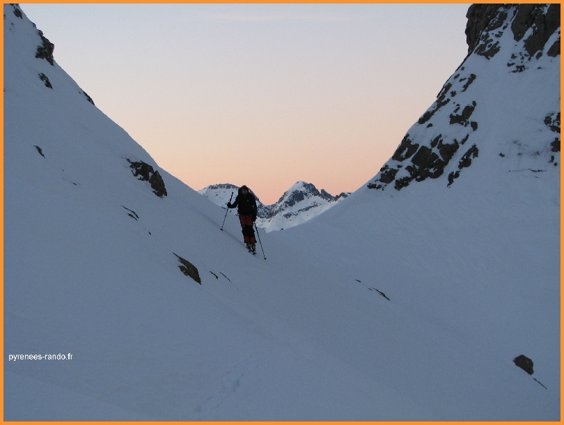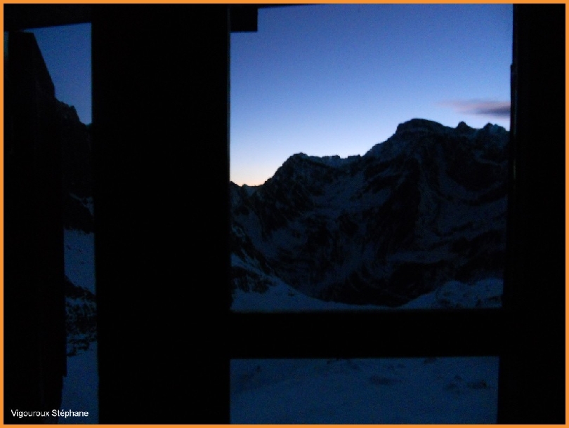 Arrivée au col des Sarradets, le refuge et le coucher de soleil sur l'Astazou,