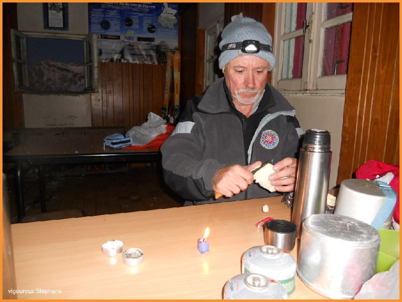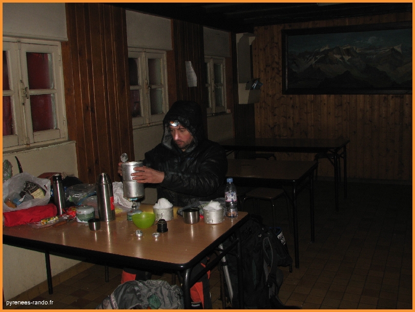 neige pour l'eau de la soupe et des boissons. Température intérieure -2°C.