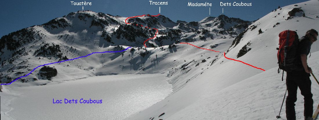 En haut du "mur" Dets Coubous, le panorama s'ouvre, les pics de Touatère 2530m, Tracens 2551m, Madamète et Dets Coubous