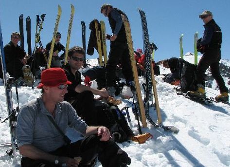 Le groupe du CAF d'Orthez dans une forêt de skis et quelques zooms sur Vignemale,Balaïtous, Gabizos.