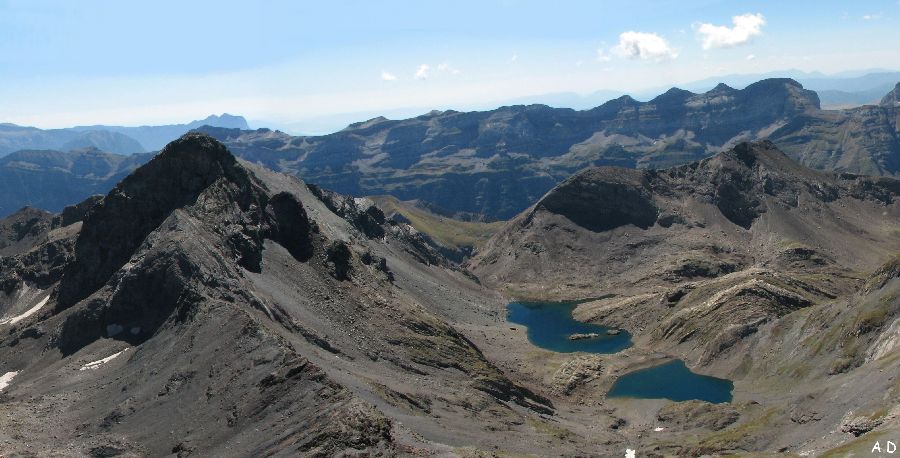 Depuis la col de la Munia, la crête menant à la Robiñera avec les lacs de la Munia
