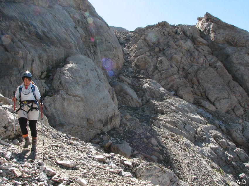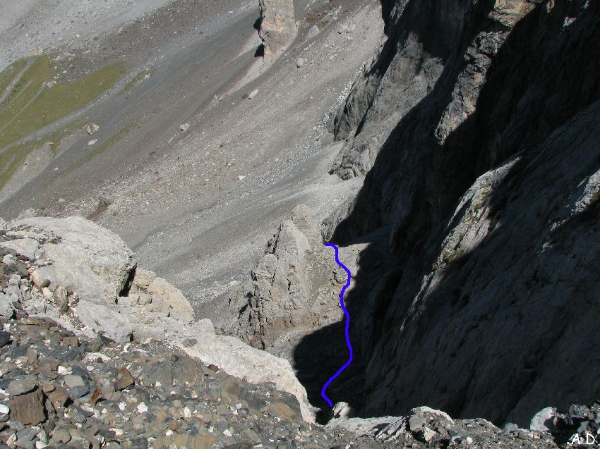 La vire cachée qui permet de franchir la barre rocheuse du cirque.