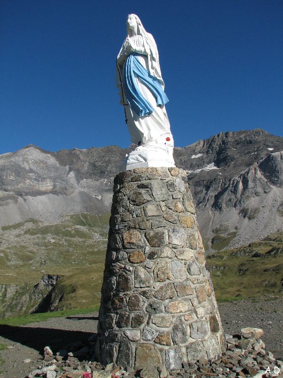 Sur le plateau, la vierge protège les troupeaux,