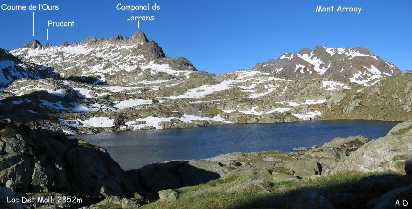 Lac Det Mail, dominé par les pics de la Coume de l'Ours, Prudent, Campanal de Larrens.