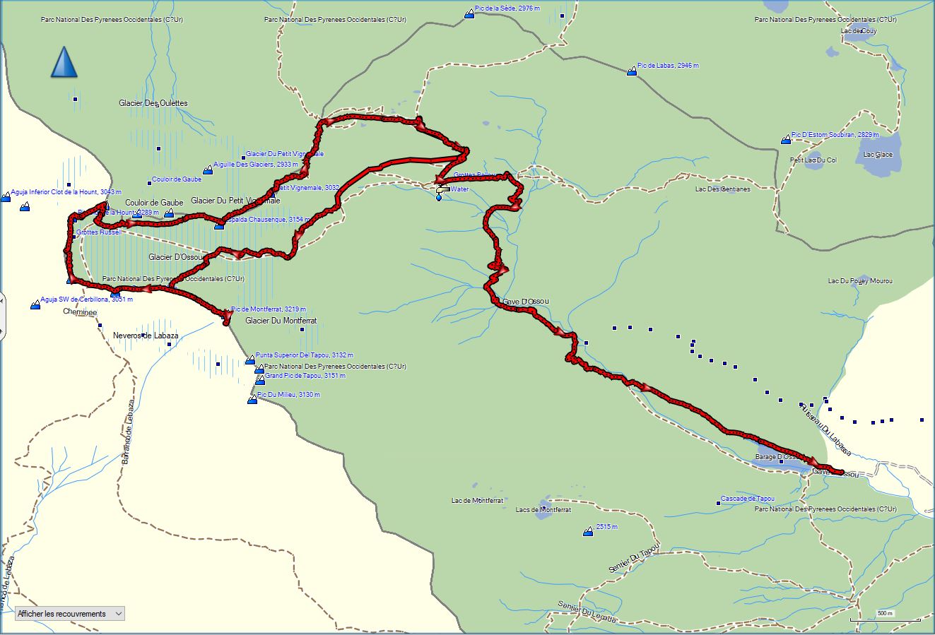 sont situées entre le pic du Clot de la Hountet le Vignemale, puis