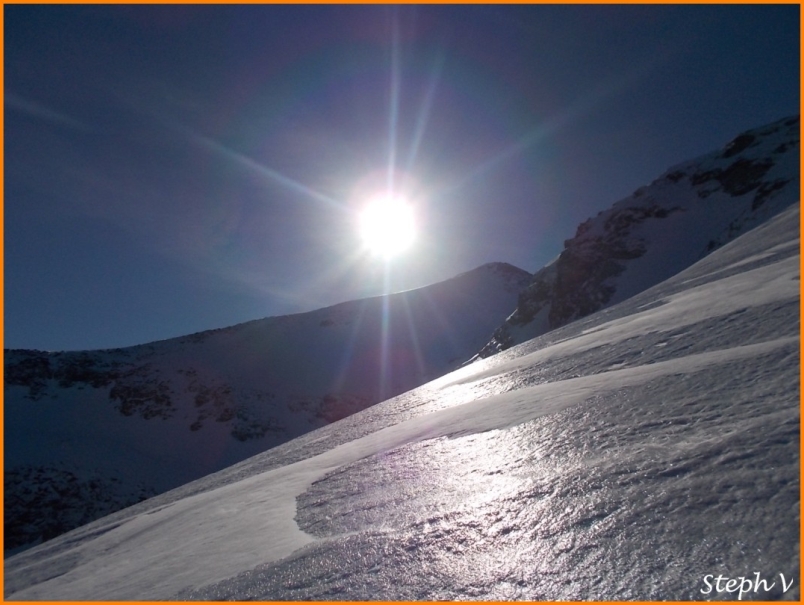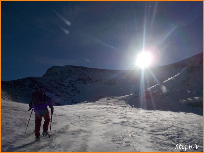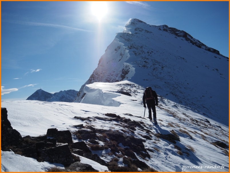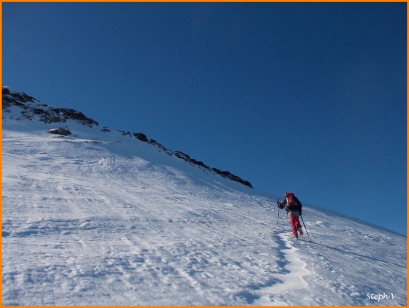 Le sommet est en vue, le vent d'ouest façonne les corniches.