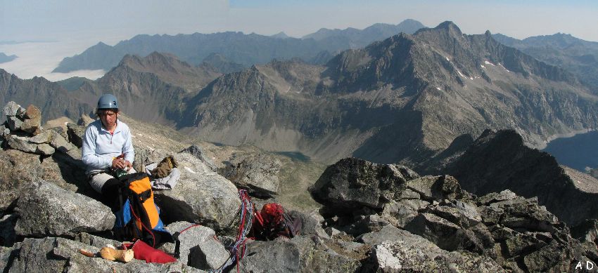 Le pic long 3192m est le plus haut des sommets pyrénéens entièrement français. Ce pic n'est pas facile à atteindre, toutes les voies demandes attention et l'expérience de la haute montagne, mais le panorama est grandiose : Ramoun, lac de Cap de Long, Estaragne, Campbieil... (Cliquez sur la photo pour afficher la légende) |