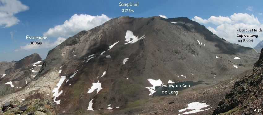 Pour descendre du Badet, prendre l'arête sud filant vers le pic de Maou. (Cliquez sur la photo pour afficher la légende) |